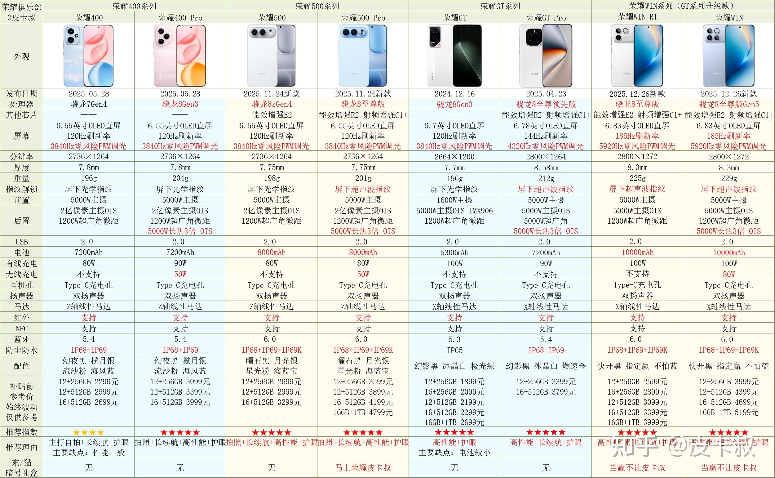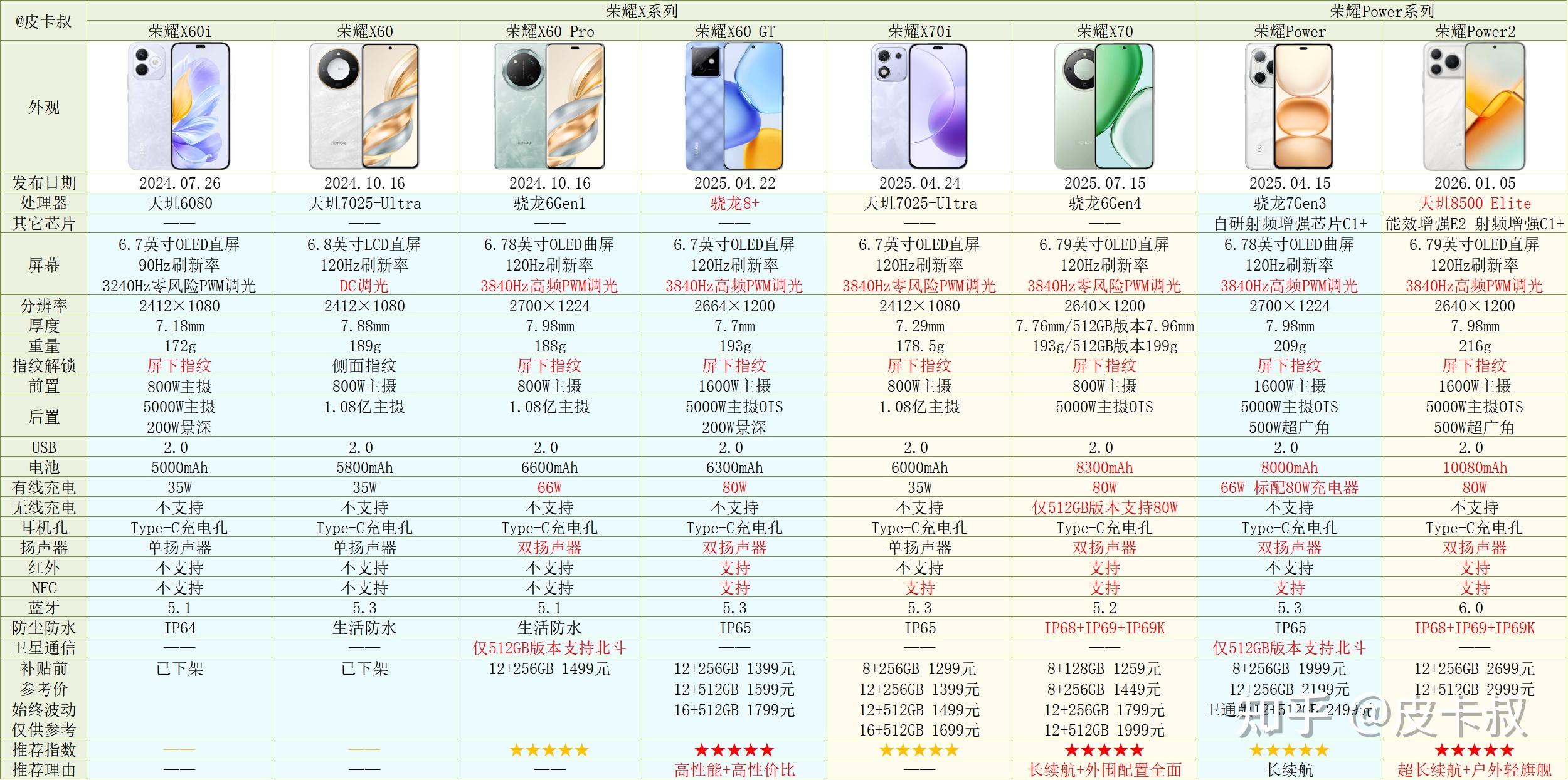 本篇主要介绍荣耀品牌各个系列的机型。长期更新维护,建议收藏。