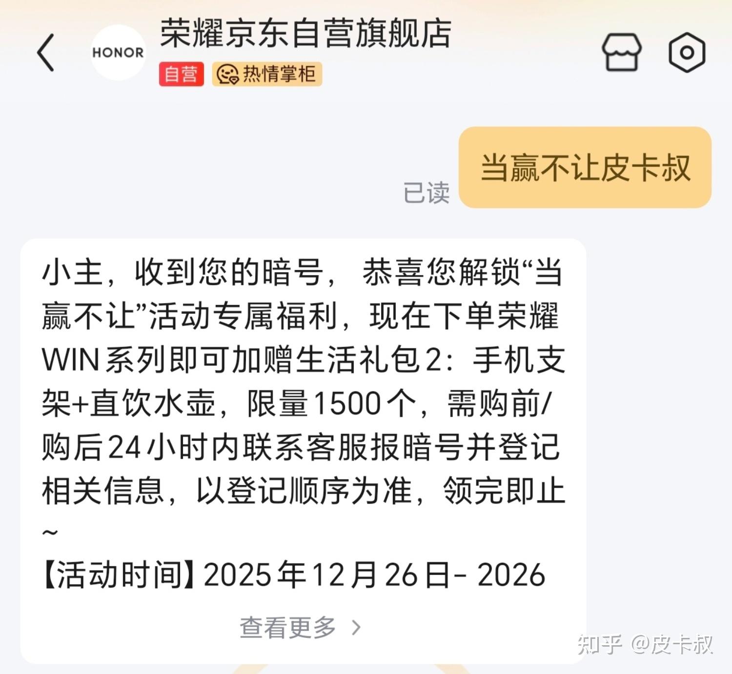 荣耀WIN系列在京东、天猫还有暗号礼盒,暗号:当赢不让皮卡叔