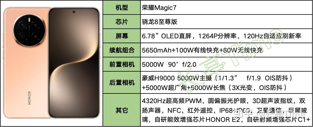 荣耀Magic7在性能、屏幕、护眼、耐摔、续航、充电、通信等方面都很强悍,且外围配置都相当齐全。