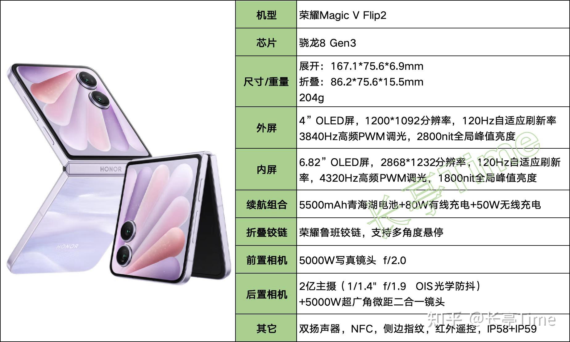 与上代荣耀Magic V Flip相比,荣耀Magic V Flip2在性能、续航、充电、后置主摄、内外屏亮度、内屏分辨率、防尘防水等方面的升级幅度较大,综合产品力更强。