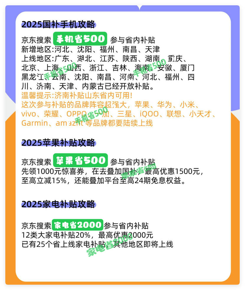 区域差异:江苏/广东补贴品类最全,陕西/湖南数码额外加码10%。