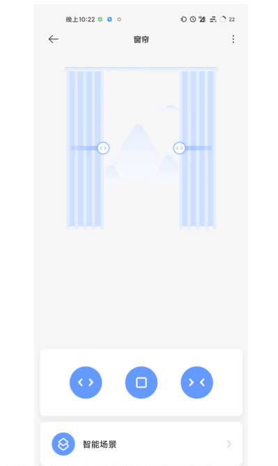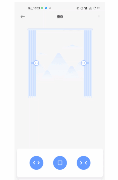 又或者通过APP上的控制图标控制开合或停止,当然也可以和其他智能硬件联动来实现窗帘的具体控制。