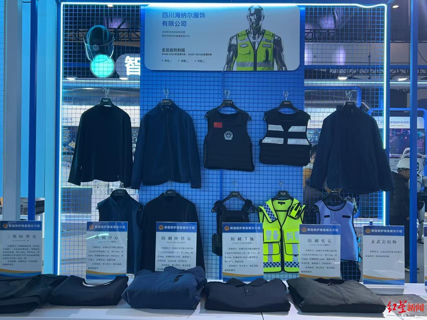 装备展上亮相的还有成都本土企业海纳尔服饰推出的消防类产品耐高温防火服,以及安防类产品防刺服、防弹衣。“我们推出的耐高温防火服,使用的新型阻燃材料,最高可以耐高温1800℃。”四川海纳尔服饰有限公司销售部总经理文一豪介绍,“公司推出的防刺服和防弹衣产品,采用全球首创的玄武岩纤维技术,能实现防刺、防弹、阻燃、耐酸碱多重防护,重量仅0.6-1.6公斤,适配公安、消防、救援等多场景。”