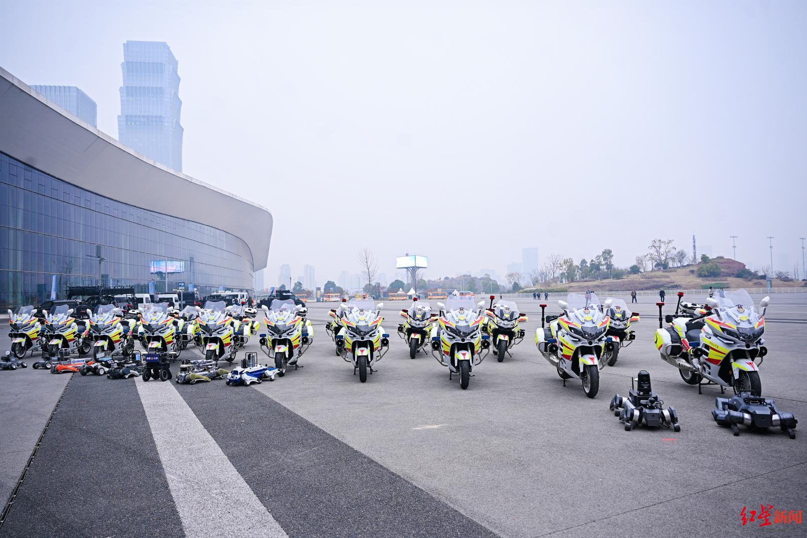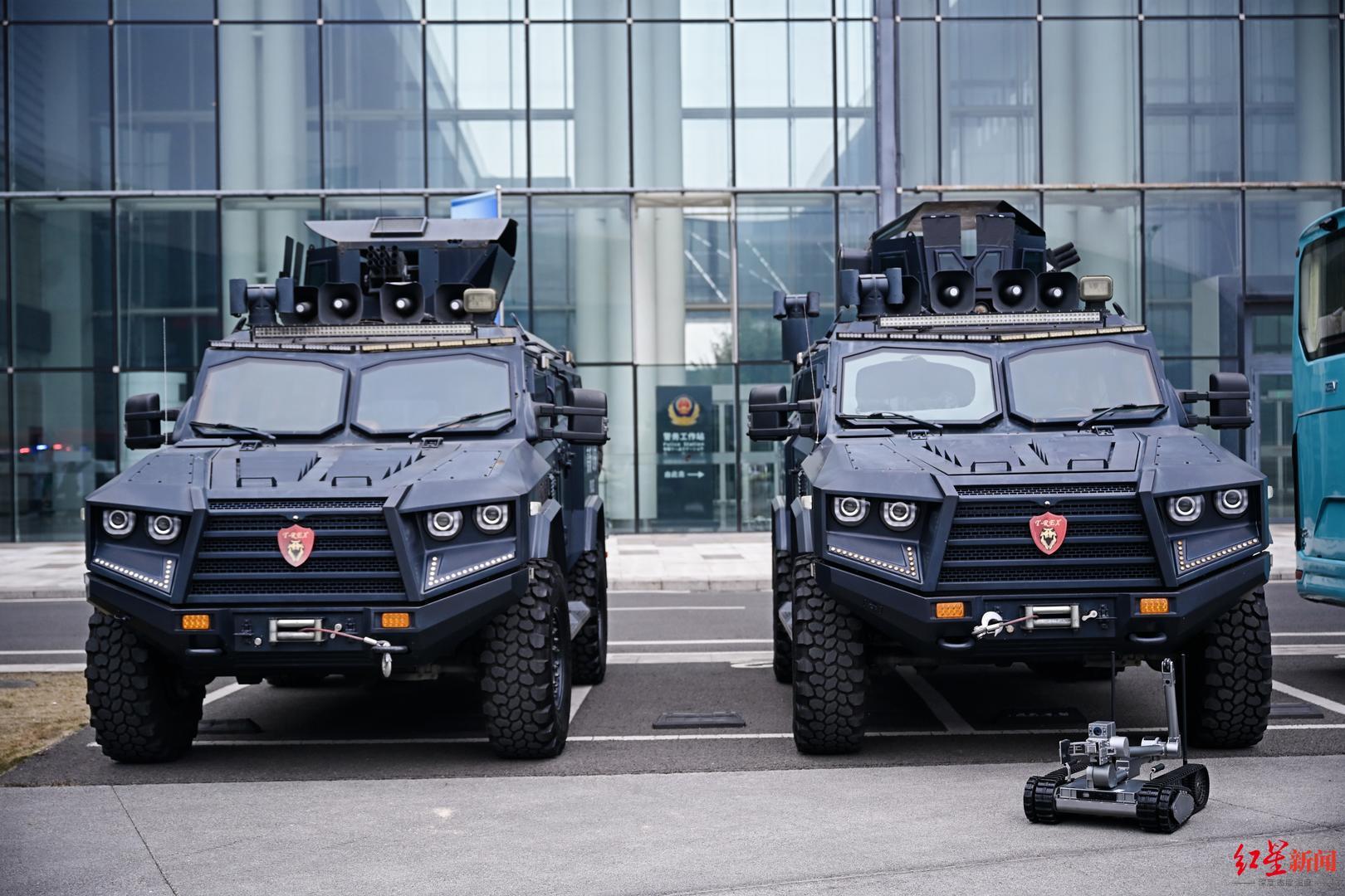 红星新闻记者注意到,会场内设置了反恐综合演练区、高空侦察灭火演练区、智慧警务装备区等展区。现场,随着9架灭火无人机连贯完成全流程消防演练,为破解高层建筑火灾处置难题提供了可复制、可推广的“成都方案”。